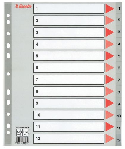 Plastové roztřiďovače Esselte MAXI s označením 1-12